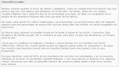 2. Nadie garantiza que tanto Filipinos (como ellos dicen) como Latinos pueda levear estrictamente en esos horarios. Al imposibilitar una segunda opción para los amara 40+ provocarán KS y mayor congestión de usuarios en los horarios de leveo.